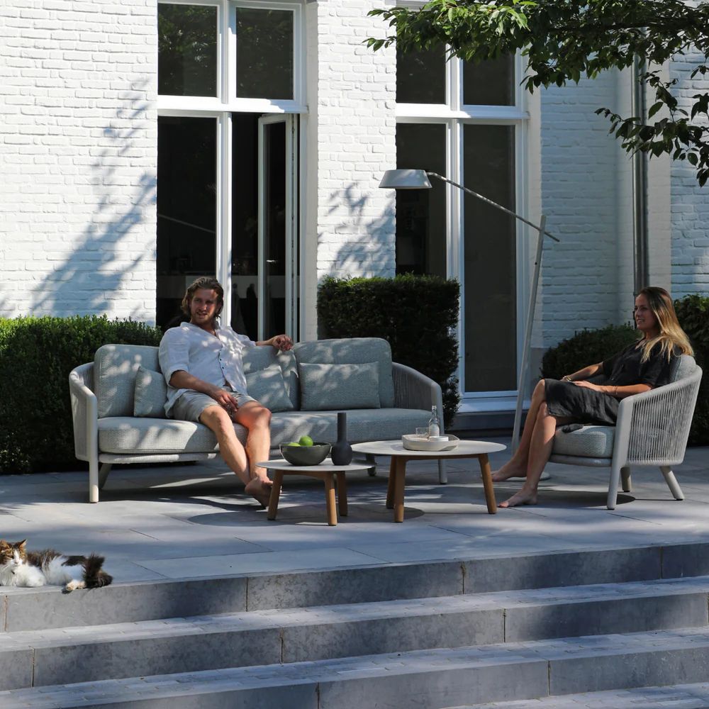 Modern design and generous proportions are effortlessly combined in this luxurious outdoor couch deep, comfortable seat and back cushions included.