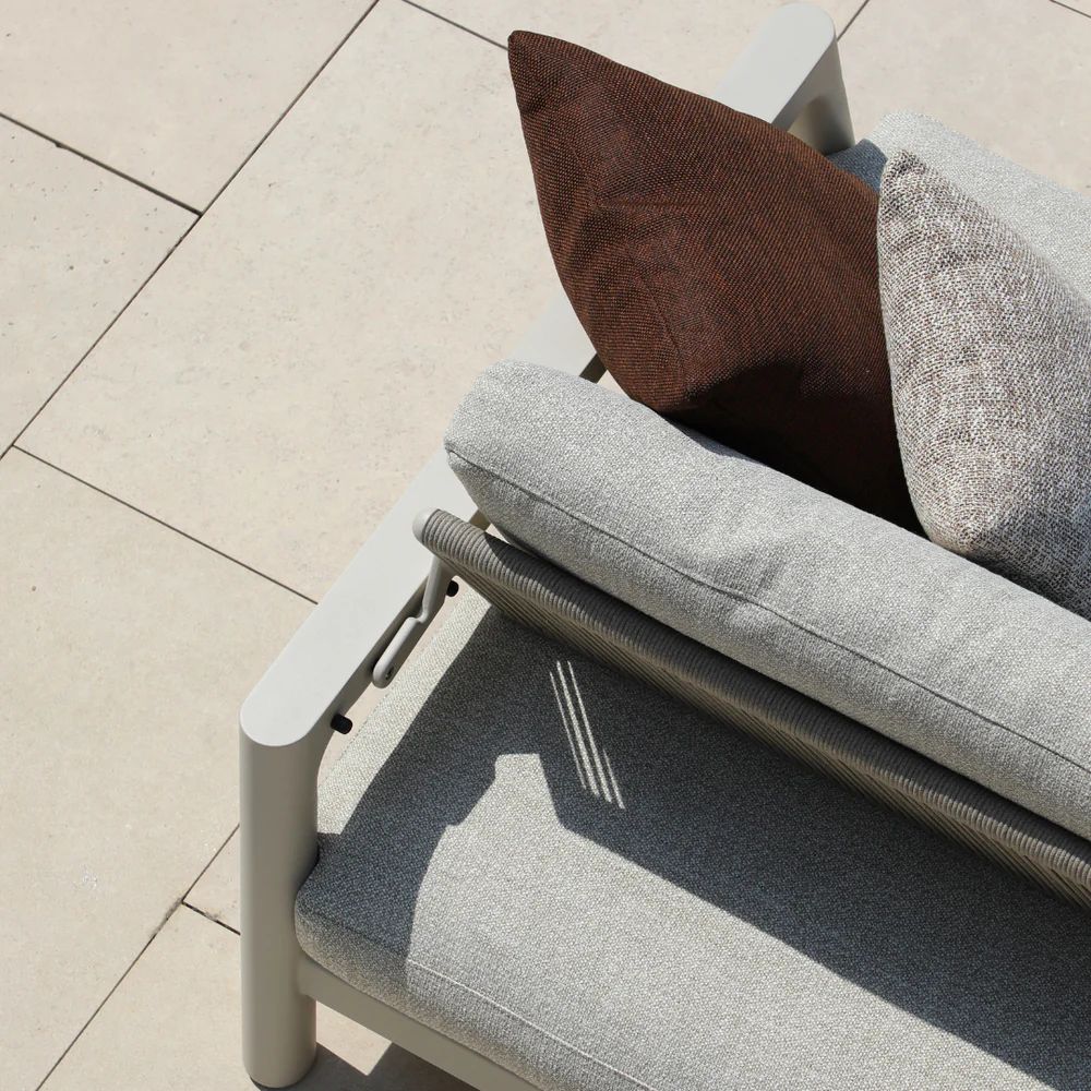 A versatile, refined aesthetic featuring clean lines and generous proportions for a timeless design, features Pebl’s patented new ‘flex seating system’ – 2 adjustable positions of the backrest allow for versatile seating options – regular, deep or lounger-style seating deep, comfortable seat and back cushions included plus 2 x 50 x 50cm and 2 x 60 x 60cm scatter cushions.